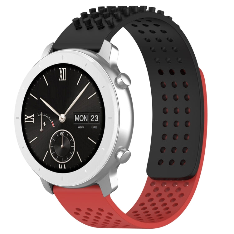 Correa de Silicona para Amazfit Pop con Puntos 3D Transpirables y Orificios 20mm (Negro + Rojo)