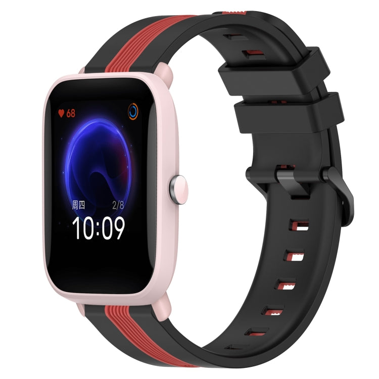 Correa de Reloj Amazfit Pop Pro 20mm Silicona Dos Colores Vertical (Negro + Rojo)