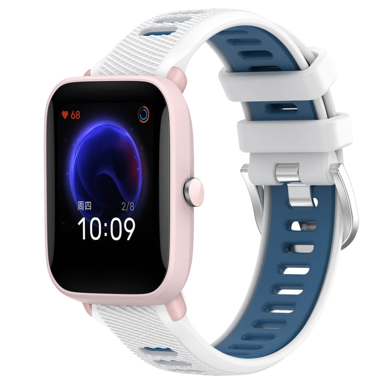 Correa de Reloj Amazfit Pop Pro 22mm silicona textura cruzada con hebilla de acero (Blanco + Azul)