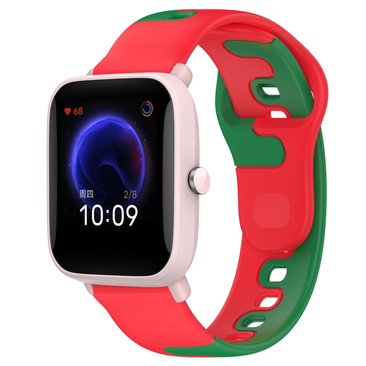 Correa de Reloj para Amazfit Pop Pro Silicona Doble Color 20mm (Rojo + Verde)