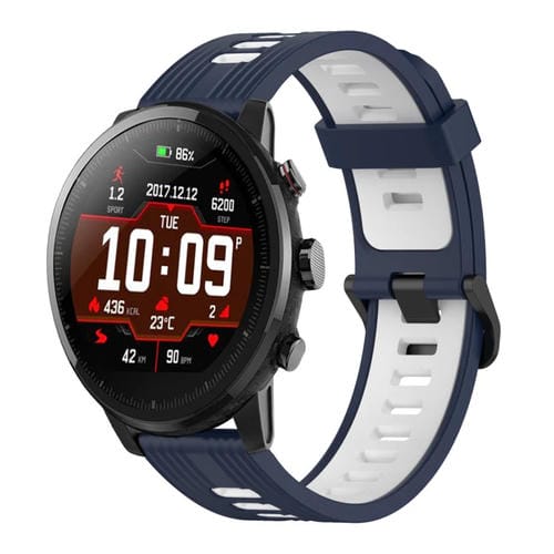 Correa de Reloj Amazfit Stratos 22mm Silicona Patrón Vertical Dos Colores (Azul Oscuro + Blanco)