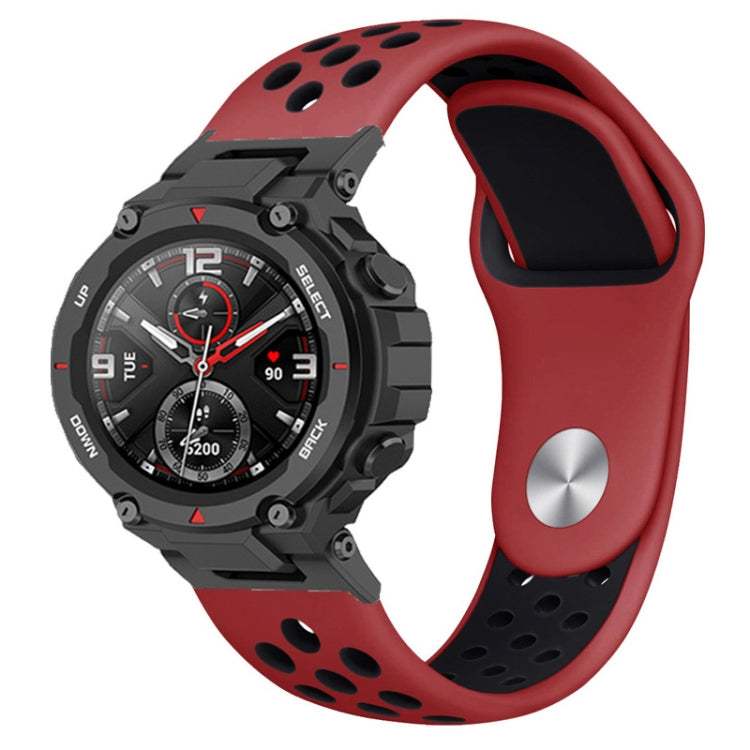 Correa de Reloj Amazfit T-Rex 2 Silicona con Agujeros y Hebilla Inversa (Rojo y Negro)