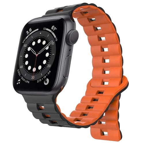 Pour Apple Watch 6 Bracelet de montre en silicone magnétique bicolore avec boucle inversée 40 mm (noir + orange)