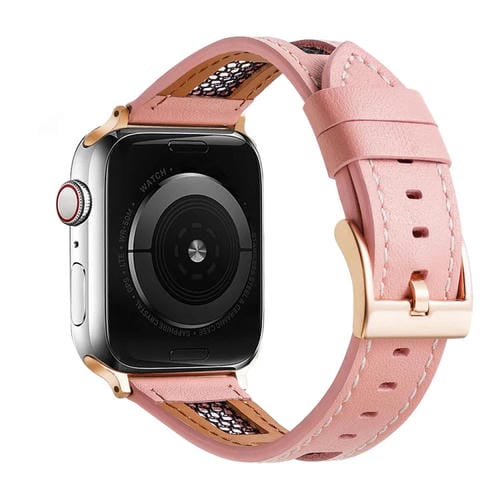 Correa de Reloj para Apple Watch Se 2022 de Cuero Genuino Piel de Becerro Malla 40mm (Rosa)