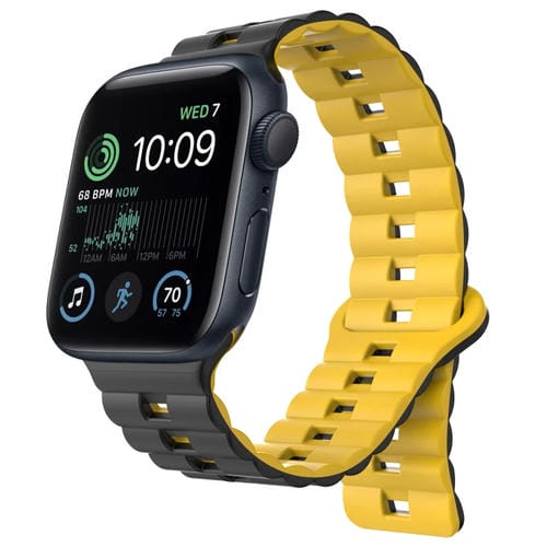 Pour Apple Watch SE 2022 Bracelet de montre en silicone magnétique bicolore avec boucle inversée 40 mm (noir + jaune)