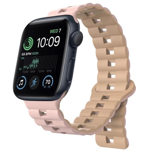 Pour Apple Watch SE 2022 Bracelet de montre en silicone magnétique bicolore avec boucle inversée 44 mm (rose + gris)