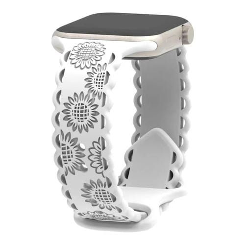 Correa de Silicona para Apple Watch Se 2023 44mm con Relieve de Girasol (Blanco)
