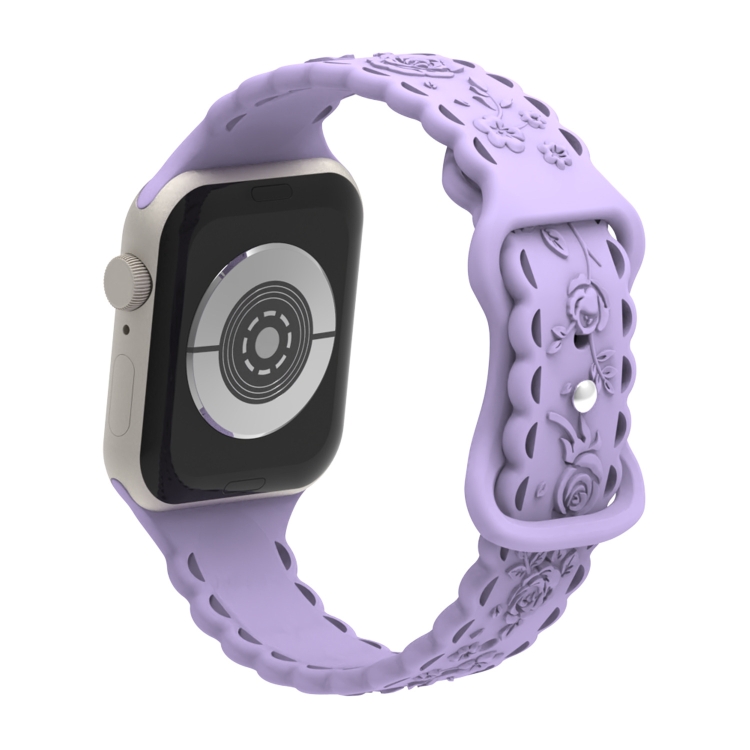 Correa de Silicona para Apple Watch Se 2023 44mm con Relieve de Rosa 3D (Púrpura Claro)