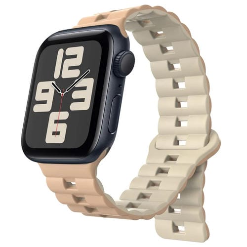 Pour Apple Watch SE 2023 Bracelet de montre en silicone magnétique bicolore avec boucle inversée 44 mm (blanc lait + blanc antique)