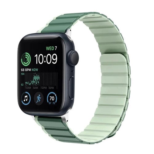 Correa para Apple Watch SE 44mm Zga Silicona Magnética Dos Colores (Verde Oscuro + Verde Claro)