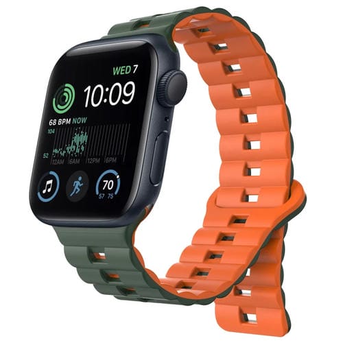 Pour Apple Watch SE Bracelet de montre en silicone magnétique bicolore avec boucle inversée 40 mm (vert olive + orange)
