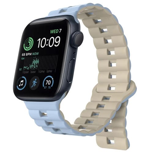 Pour Apple Watch SE Bracelet de montre en silicone magnétique bicolore avec boucle inversée 44 mm (bleu + Starlight)