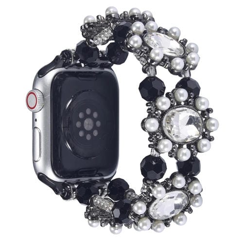 Correa para Apple Watch Series 2 42mm con Pulsera de Piedras Preciosas y Perlas (Negro)