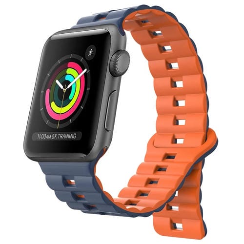Pour Apple Watch Series 2 Bracelet de montre en silicone magnétique bicolore avec boucle inversée 42 mm (bleu nuit + orange)