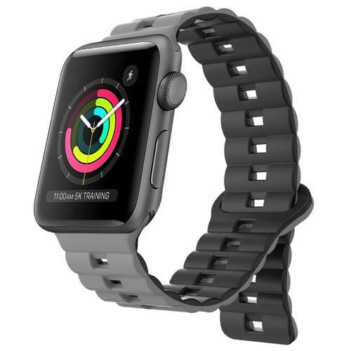 Pour Apple Watch Series 2 Bracelet de montre en silicone magnétique bicolore avec boucle inversée 42 mm (gris + noir)