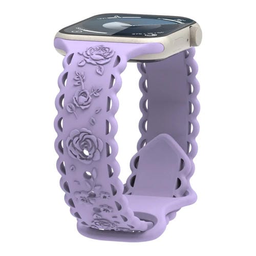 Correa de Silicona para Apple Watch Series 5 44mm con Relieve de Rosa 3D (Púrpura Claro)