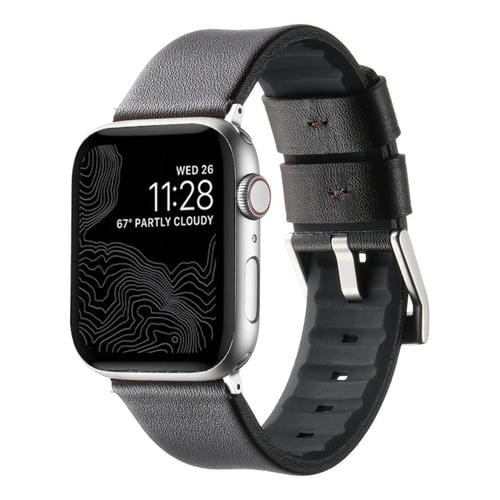 Correa para Apple Watch Series 5 44mm Silicona y Cuero Genuino (Café) con Hebilla Plateada