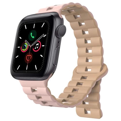 Pour Apple Watch Series 5 Bracelet de montre en silicone magnétique bicolore avec boucle inversée 44 mm (rose + gris)