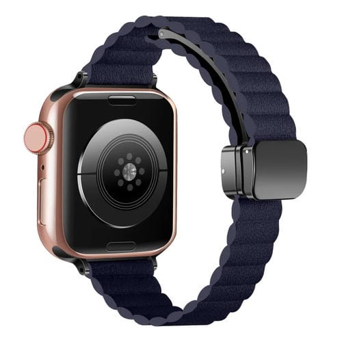 Pour Apple Watch Series 6 44 mm, bracelet de montre à boucle pliante magnétique à ondulation d'eau, style: version mince (bleu indigo)