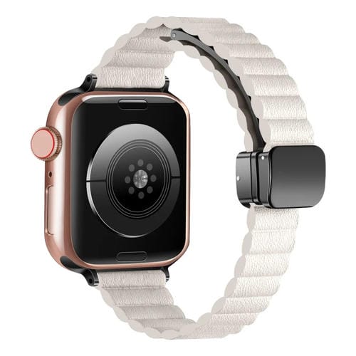 Pour Apple Watch Series 6 40 mm, bracelet de montre à boucle pliante magnétique à ondulation d'eau, style : version mince (couleur Starlight)