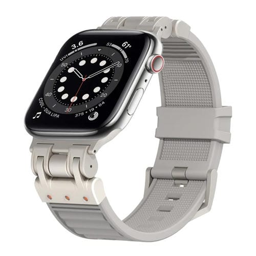 Correa de Silicona para Apple Watch Series 6 44mm a Cuadros Mecha de Metal (Gris Nube)