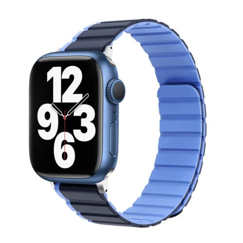 Correa para Apple Watch Series 7 45mm Zga Silicona Magnética Dos Colores (Azul Oscuro + Azul Claro)