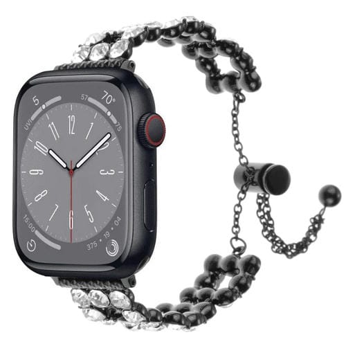 Correa de Reloj para Apple Watch Series 8 41mm con Pulsera de Metal y Diamantes de Imitación (Negro)