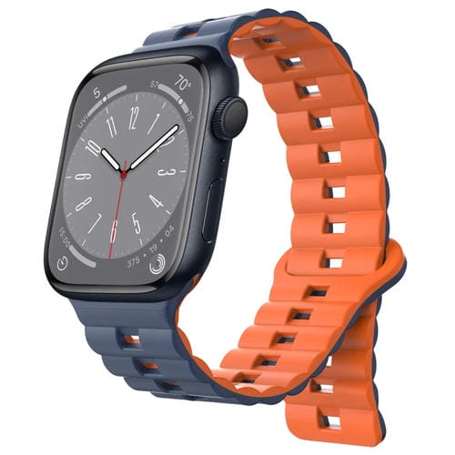 Pour Apple Watch Series 8 Bracelet de montre en silicone magnétique bicolore avec boucle inversée 41 mm (bleu nuit + orange)