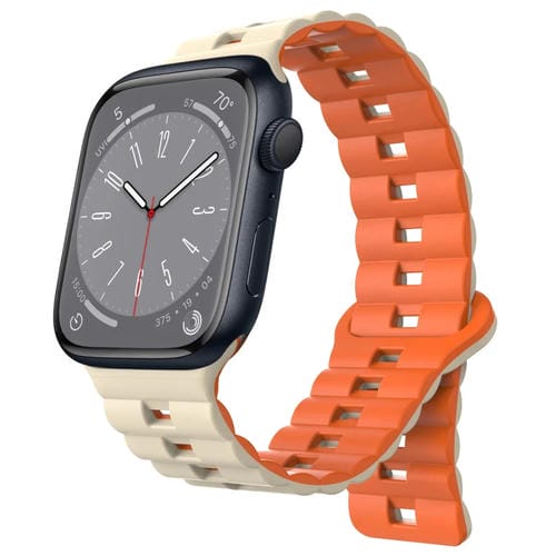 Pour Apple Watch Series 8 Bracelet de montre en silicone magnétique bicolore avec boucle inversée 41 mm (Starlight + Orange)