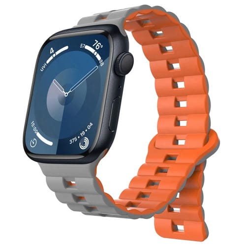 Pour Apple Watch Series 9 Bracelet de montre en silicone magnétique bicolore avec boucle inversée 45 mm (gris + orange)