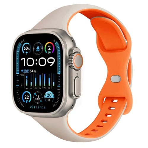 Para Apple Watch Ultra 2 49mm Correa de Reloj de Silicona con Hebilla de Mariposa Delgada de Dos Colores (Naranja Estrella)