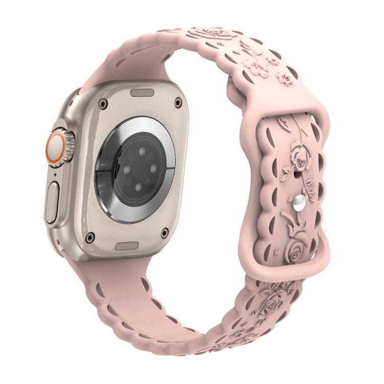Correa de Silicona para Apple Watch Ultra 2 49mm con Relieve Rosa 3D y Encaje (Rosa Arena)
