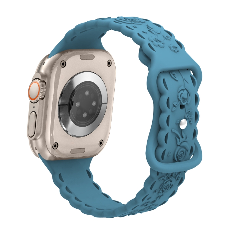 Correa de Silicona para Apple Watch Ultra 2 49mm con Relieve de Rosa 3D y Encaje (Verde Pino)