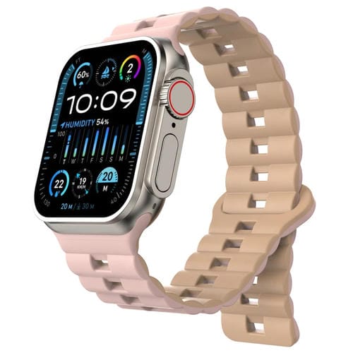 Pour Apple Watch Ultra 2 49 mm Bracelet de montre en silicone magnétique bicolore avec boucle inversée (rose + gris)