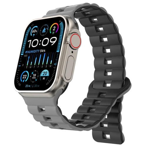 Pour Apple Watch Ultra 2 Bracelet de montre en silicone magnétique bicolore avec boucle inversée 49 mm (gris + noir)