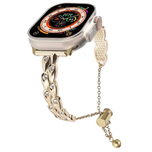 Correa de Reloj para Apple Watch Ultra 49mm con Pulsera de Metal y Pavo Real con Diamantes de Imitación (Dorado)