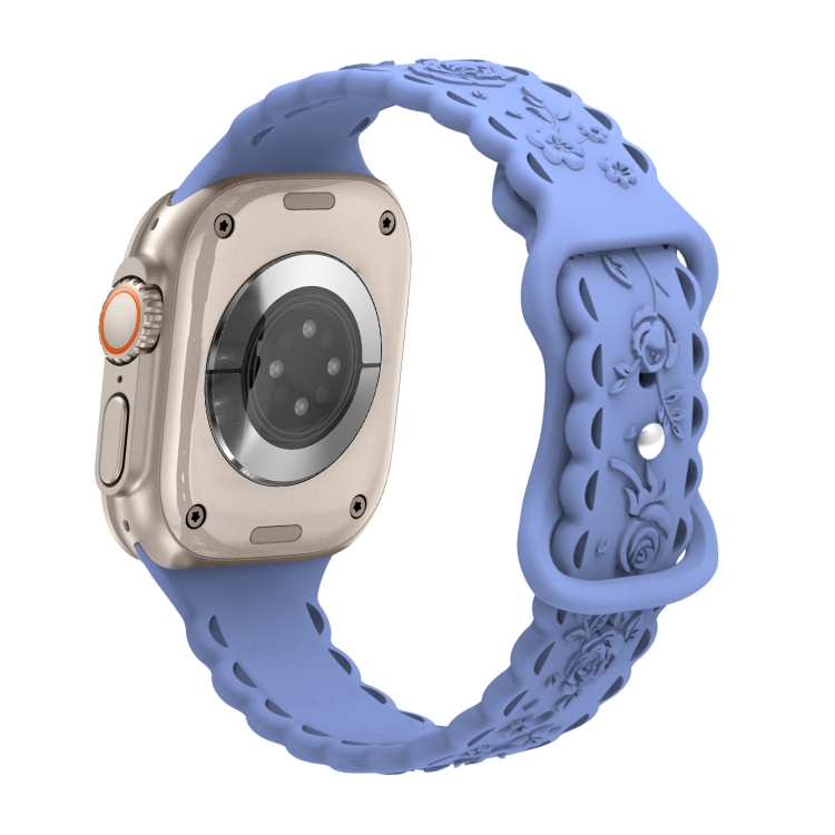 Correa de Silicona para Apple Watch Ultra 49mm con Relieve de Rosa 3D y Encaje (Lavanda)