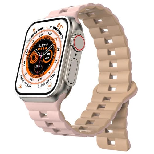 Pour Apple Watch Ultra 49 mm Bracelet de montre en silicone magnétique bicolore avec boucle inversée (rose + gris)