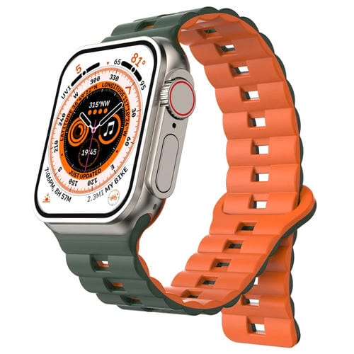 Pour Apple Watch Ultra 49 mm Bracelet de montre en silicone magnétique bicolore avec boucle inversée (vert olive + orange)