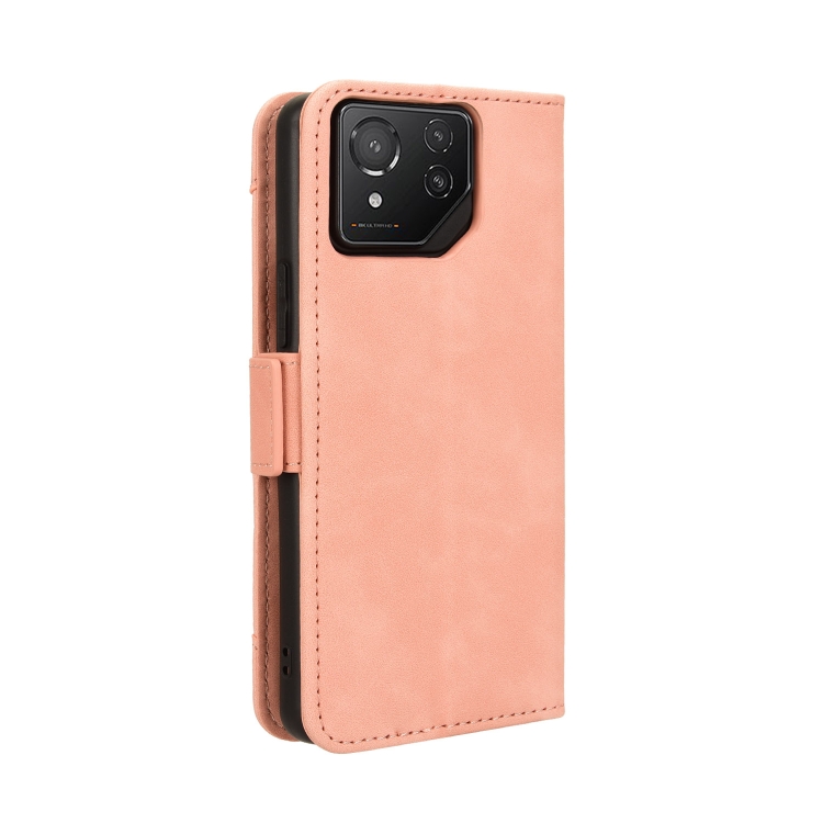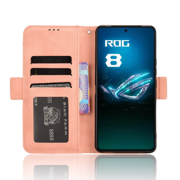 Funda de Cuero para Asus Rog Phone 8 con Textura Becerro y Ranuras para Tarjetas (Rosa)