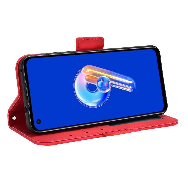 Funda de Cuero para Asus Zenfone 10 y 9 con Ranuras para Tarjetas y Textura Becerro (Rojo)