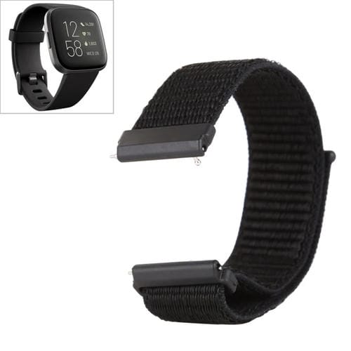 Banda de Reloj de Nylon Fitbit Versa Versa 2 con Gancho y Sujetador de Bucle (Negro)