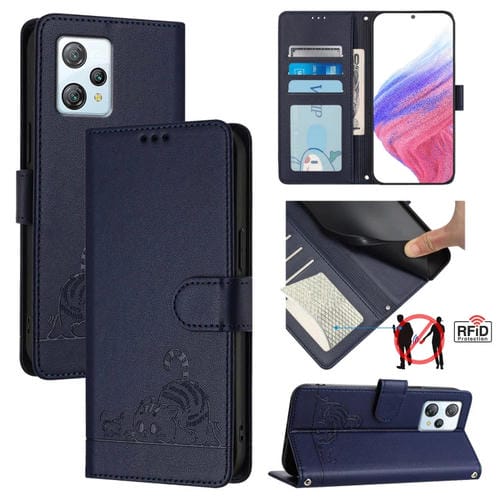 Estuche para Teléfono BlackView A53 Cat Rat Cuero Rfid con Patrón En Relieve y Cordón (Azul)