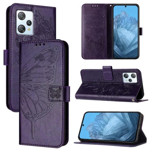 Funda de Cuero para BlackView A53 con Mariposa en Relieve (Púrpura Oscuro)
