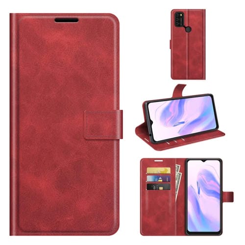 Funda de Cuero BlackView A70 Retro Becerro Patrón Hebilla Horizontal Flip con Soporte y Ranuras para Tarjeta (Rojo)