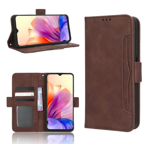 Funda de Cuero para BlackView Oscal C80 con Textura Becerro y Ranuras para Tarjetas (Marrón)