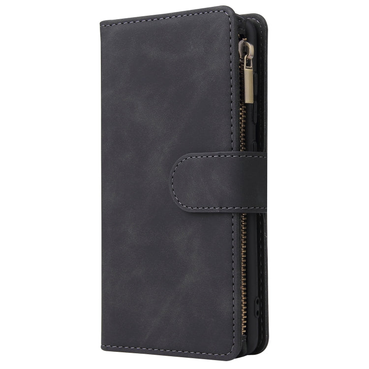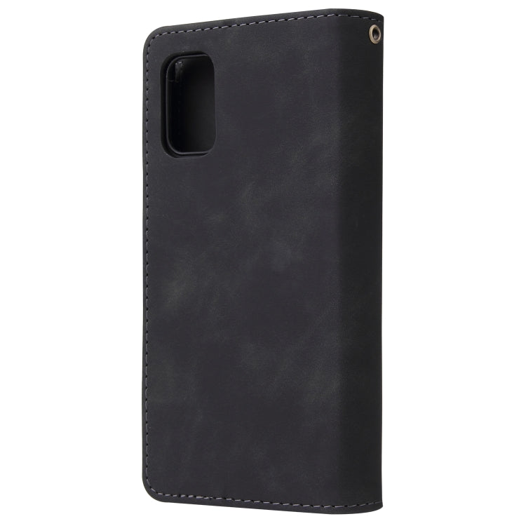 Estuche de Cuero para Galaxy A41 con Tapa Horizontal Multifuncional, Ranura para Tarjeta, Soporte, Billetera con Cremallera y Marco de Fotos (Negro)