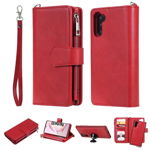 Estuche Protector 2 En 1 para Galaxy Note 10 con Cremallera Ranuras para Tarjetas Soporte y Billetera (Rojo)