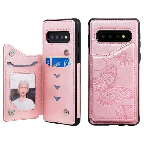 Estuche Protector Galaxy S10 con Patrón Mariposa Soporte Ranuras Tarjetas Marco Fotos (Oro Rosa)