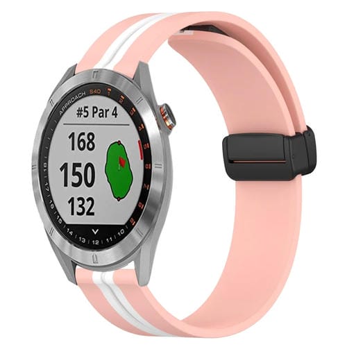 Correa de Reloj para Garmin Approach S40 Silicona con Cierre Magnético Plegable 20mm (Rosa + Blanco)